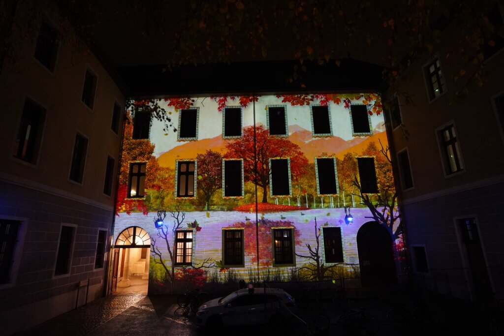The video mapping increases and sublimates the architecture it illuminates.